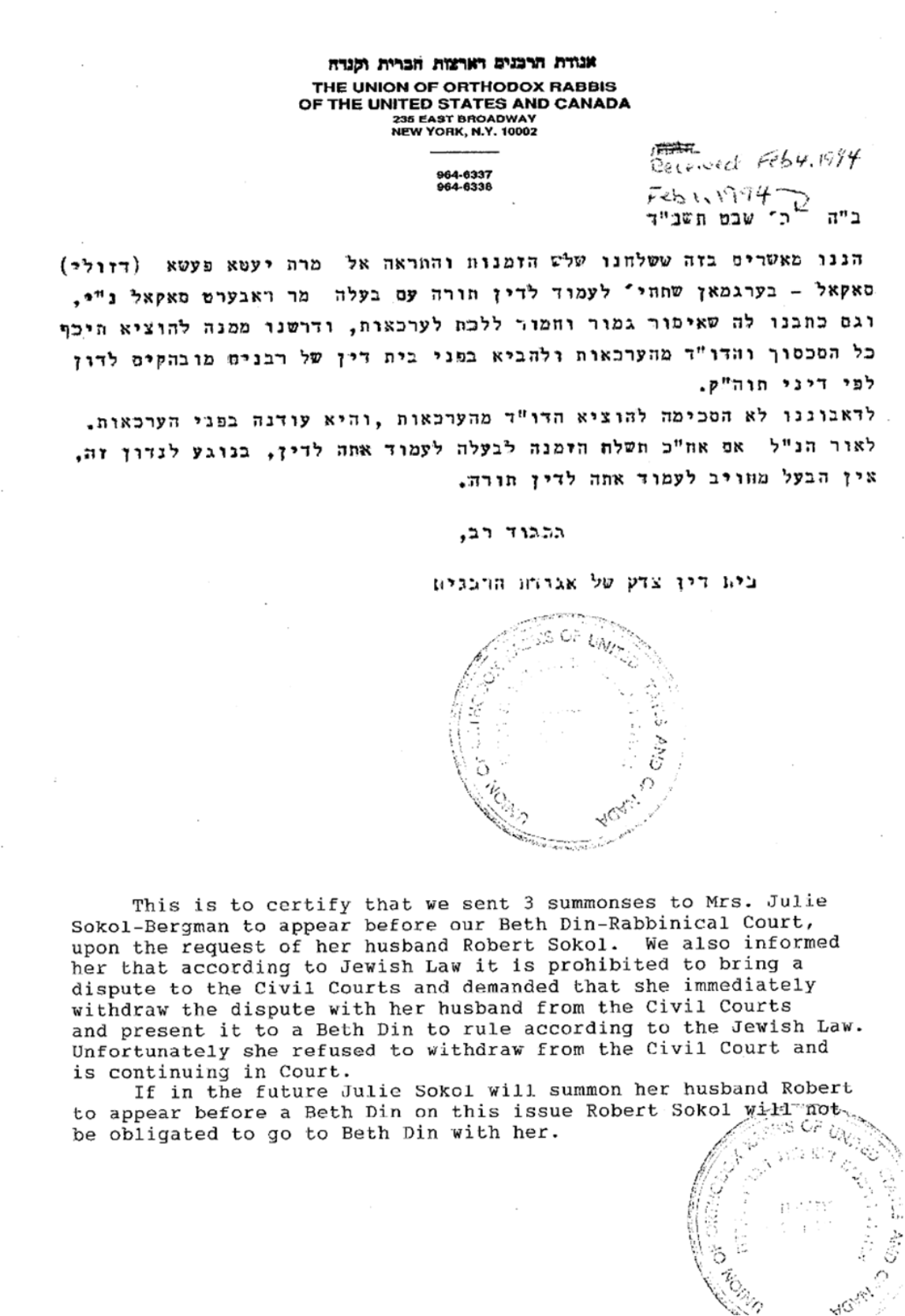 TO MAKE MATTERS EVEN WORSE: Bergmann involved a large number of Jews in her Civil Divorce case, including   the children and many Jews. All of these individuals have been made coconspirators to Mesirah, Lashon Hara and Genivah.   This is indeed very sad. Until Teshuvah is done, Bergmann remains a Fake Agunah and in violation of Mesirah, Lashon   Hara and Genivah.             DO YOU KNOW ANY OTHER FAKE AGUNAH’S?       We welcome your QUESTIONS, COMMENTS, CONCERNS. Keep those emails coming!!